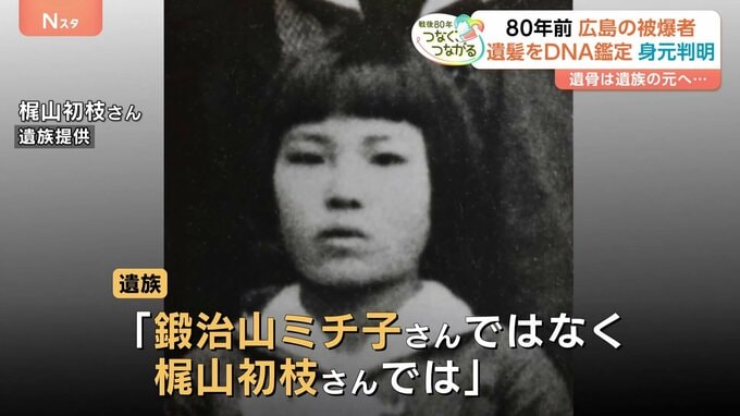 80年前の原爆投下で亡くなった人たちの遺骨が納められている広島市の原爆供養塔です。そのうちの1人の遺骨の身元が、一緒に納められていた遺髪の「DNA型鑑定」で特定され、遺族の元に返されます。梶山初枝さんのお…