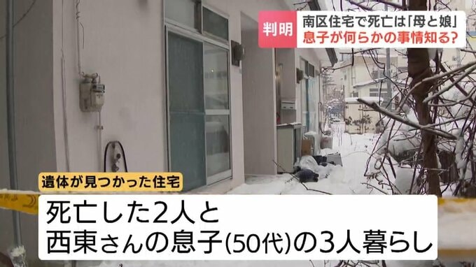 13日、札幌市南区の住宅で死亡しているのが見つかった2人は、この家に住む77歳の女性と52歳の娘であることがわかりました。