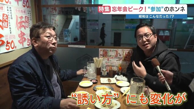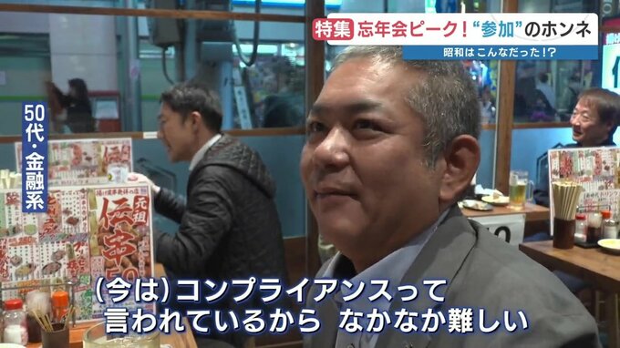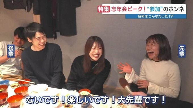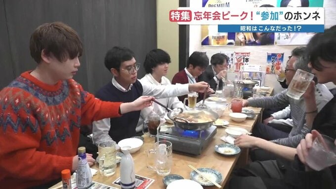 民間の調査によりますと、会社・仕事関係の忘年会に関するアンケートでは「参加したい」と回答したのは全体の36.9%。しかし、年代別でみると意外にも20代30代では全体平均を上回り、約4割が参加に前向きという結果でした。