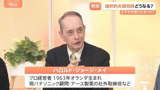 今の日本では、結婚すると名字を変えるのは95%が女性です。もちろん望んで変える方もいますが、望まず変えることでアイデンティティーが失われる。旧姓の使用拡大をいくら行ったとしても、海外で仕事をする場合の不便さというのは特に変わらない。(不便が)圧倒的に女性に偏っているとなると、やはり是正すべきなのではないかと思っています。