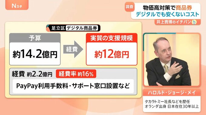 自治体だけではやっていなくて、いわゆる企業、足立区の例ではPayPayを利用していますが、民間を通じて行うので、こういう計算になるのかなと思います。