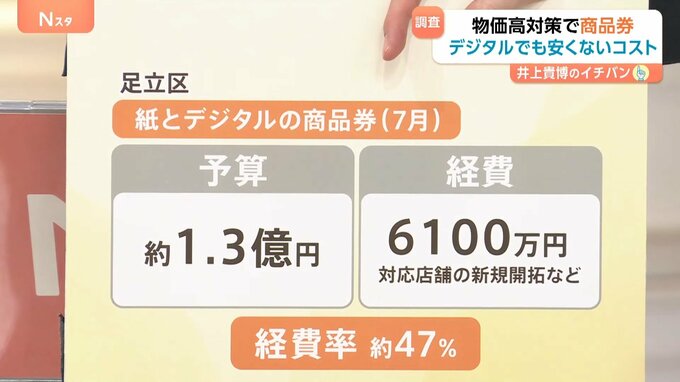 デジタルの商品券とデジタルで届かない方々に対して、紙の商品券ということで予算規模が約1.3億円、経費が6100万円かかりました。