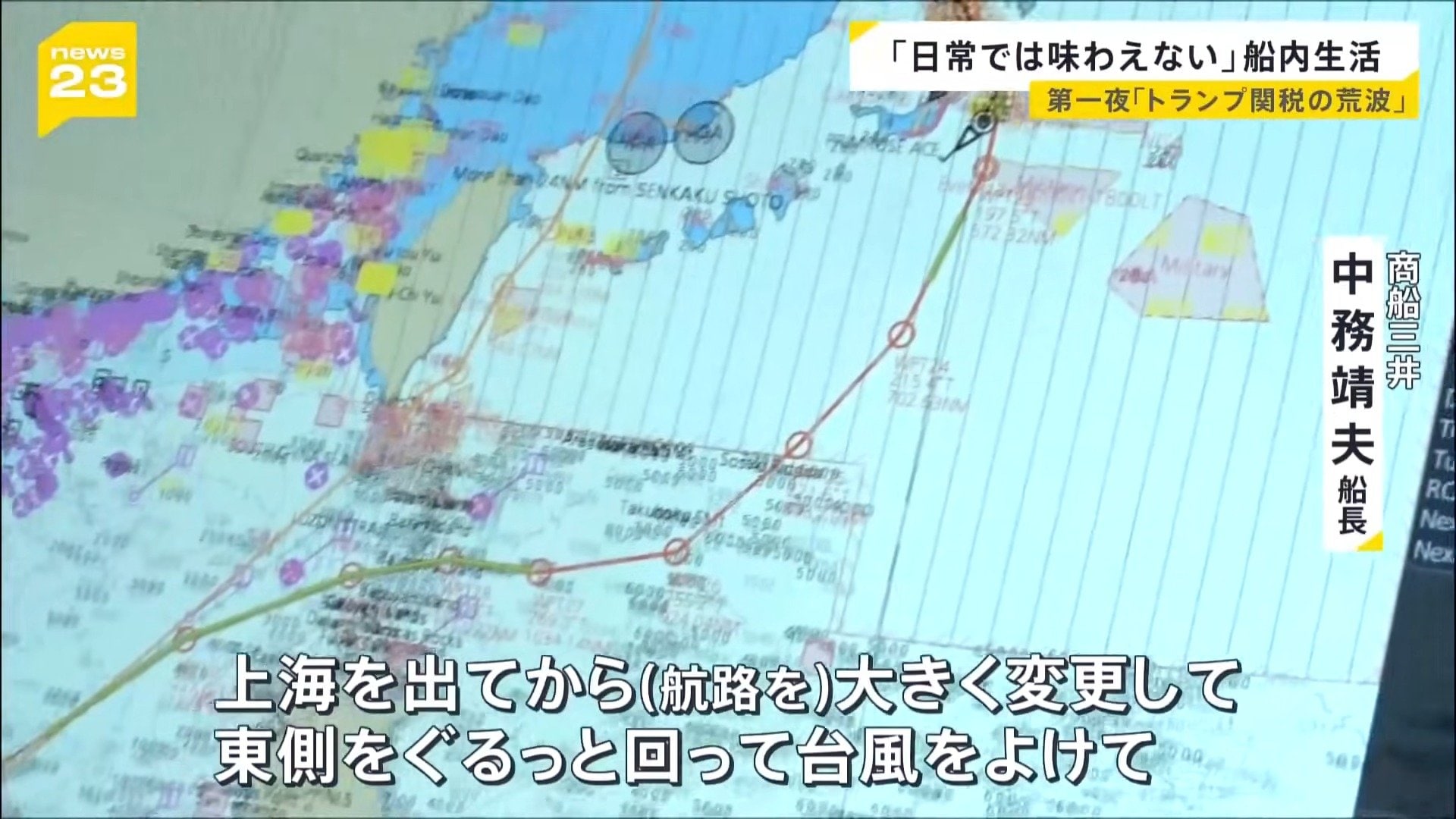 「上海を出てから(航路を)大きく変更して、東側をぐるっと回って、台風をよけて」