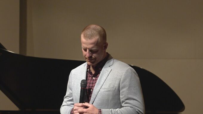 クリスチャンのマートンさん。祖父からゲーム機をもらったことなどクリスマスについての思い出も語りながら、平安と希望を見つける自身の経験を通して、クリスマスの本質的な意味を伝えるメッセージで締めくくりました。