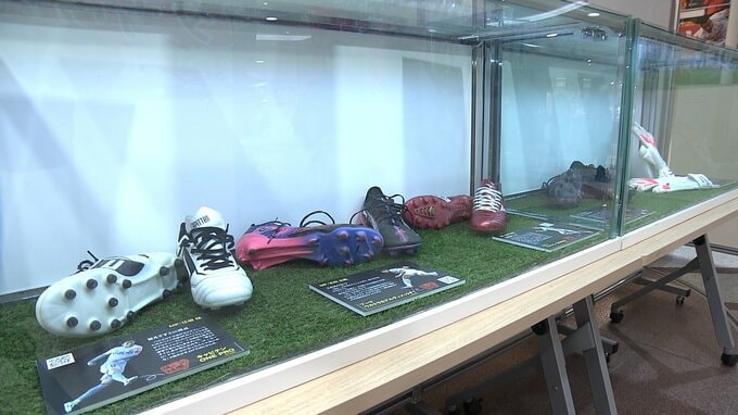 全38試合の名シーンを捉えた写真71枚のほか、今シーズン選手らが着用していたスパイクやグローブも展示されていて、訪れたサポーターを楽しませています【画像②】。