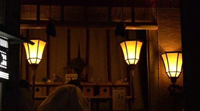 午前3時から始まった神事では、一対のロウソクだけが灯る中、鵜様がカゴから放たれました。