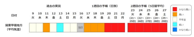 流れ込む日もあるため高い日が多く、20日頃からはかなり高くなる見込み