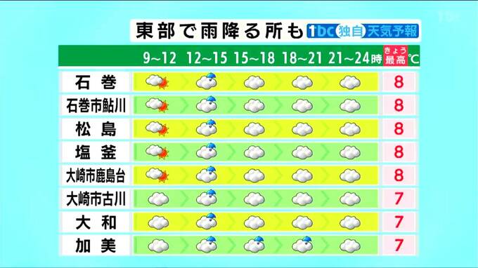 ■石巻:8℃ ■石巻市鮎川:8℃ ■松島:8℃