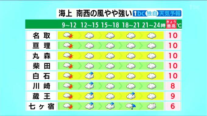 ■柴田:10℃ ■白石:10℃ ■川崎:8℃
