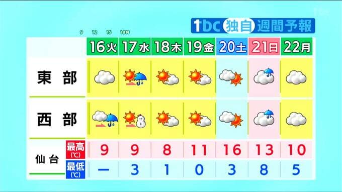明日も午後を中心に天気が下り坂となり、夕方以降は雨や雪が降るところがあるでしょう。木曜から土曜は晴れそうですが、日曜は広い範囲で雨が降る見込みです。