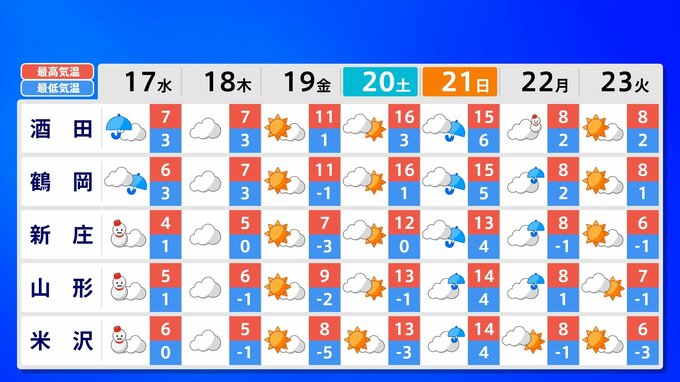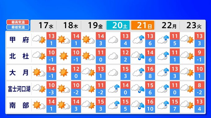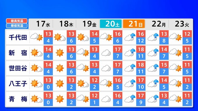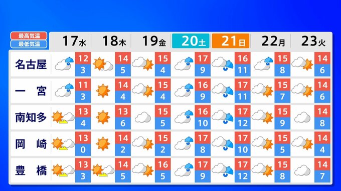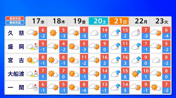 【熱帯じょう乱】日本の南の海上に発生へ 日本には「発達する低気圧」次々と【雨と風のシミュレーション17日(水)~26日(金)/全国各都市の週間予報】 南日本放送 2025年12月16日(火) 12:00 国内 天気 全国各都市の週間予報 (23日(火)まで) 週間予報を『各県につき5つの都市』ずつ画像で掲載しています。21日(日)は低気圧が北海道沖に進み、前線が本州を南下するため雨が降るでしょう。全国的に気温が高いため雨のところが多い見込みです。画像でご覧ください。