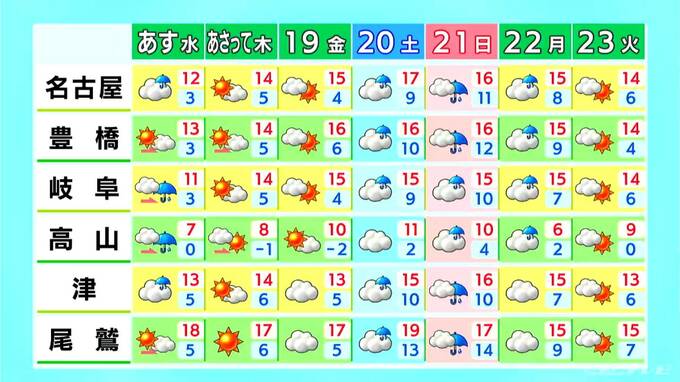 あす水曜日の午後は広く雨や雪が降るでしょう。あさって木曜日には各地で日差しが戻り、週末にかけて次第に気温は高くなる見込みです。