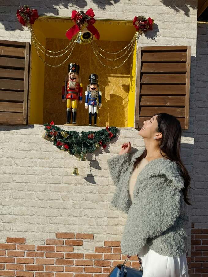 穂川さんは「この日はクリスマスっぽい気持ちで出かけたかったので、メイクはキラキララメ多めにしたよ!」と文字通りキラキラした笑顔でマーケット内のクリスマスデコレーションを堪能していました。