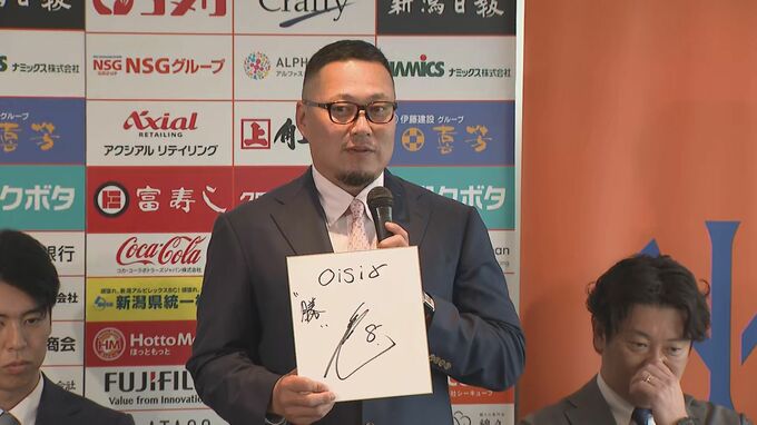 本拠地球場で行われた入団会見には松山の他、呉市出身で元楽天の宮森智志ら3人の元NPB選手が出席しました。オイシックス新潟は去年からイースタンリーグに参入しているチームで、3年目に向け6人の元NPB選手を補強しました。来季再編される2軍では東地区に属します。