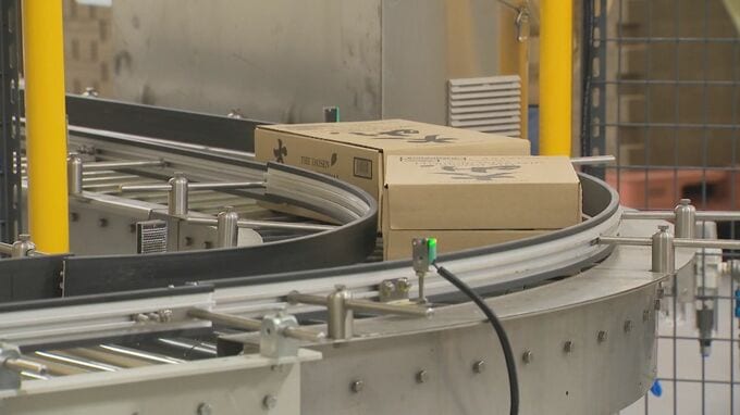 新工場では缶詰めから箱詰めまで完全自動化されていて1時間に2万缶を生産できるということです。
