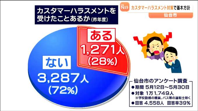 仙台市は職員への暴言や過剰な要求といったカスタマーハラスメントに対し毅然とした態度で対応を取るなど対応基準を盛り込んだ基本方針を策定しました。