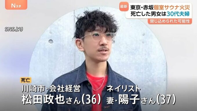 東京・港区赤坂の個室サウナ店で30代の男女2人が死亡した火事で、警視庁が2人の身元を発表しました。