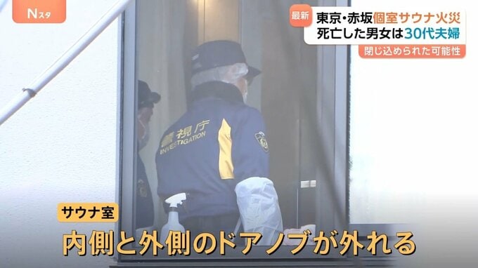 2人はサウナ室内の出入り口付近で折り重なるように倒れていましたが、その後の捜査関係者への取材で、サウナ室の木製のドアノブの内側と外側の両方が外れ、床に落ちていたことが新たにわかりました。