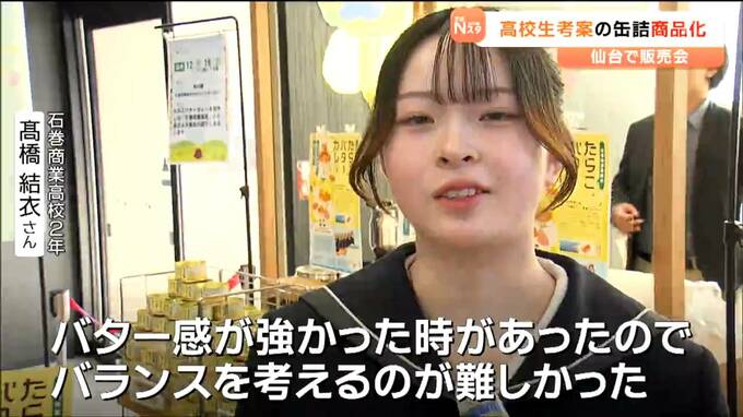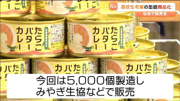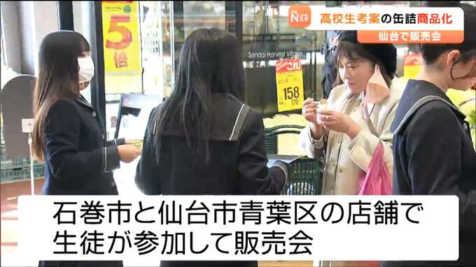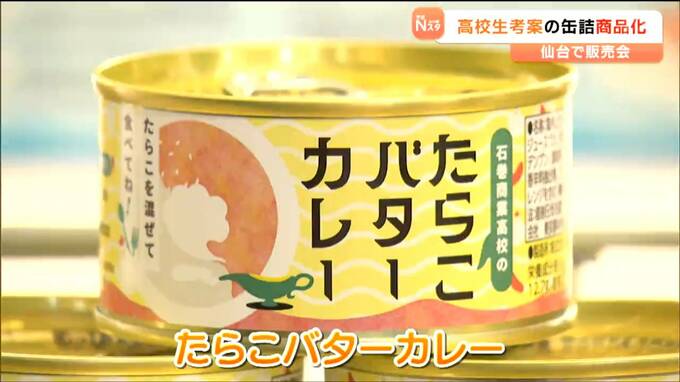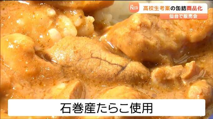 宮城県石巻産のたらこを使っています。高校生が考案した缶詰が商品化され、16日に仙台市内のスーパーで高校生が参加して販売会が開かれました。