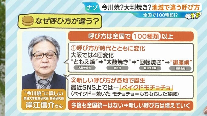 なぜ様々な呼び方があるのか、“今川焼き”に詳しい、奈良大学総合研究所の岸江信介特別研究員に聞いてみました。