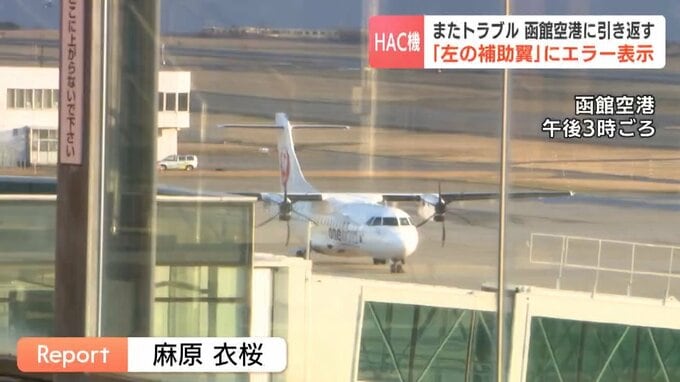 運航する北海道エアシステムによりますと、午前11時半すぎに函館空港を出発した日本航空2891便は、奥尻空港の上空を飛行していたところ、補助翼の異常を知らせるエラー表示が出たため、午後1時前に函館空港に引き返しました。