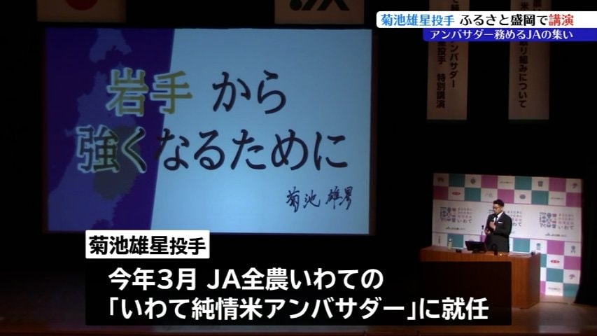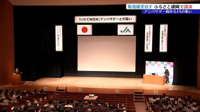 メジャーリーグ、エンゼルスの菊池雄星投手が16日、自身がアンバサダーを務めるJA全農いわてのイベントに出演し、ふるさと盛岡市で生産者を前に講演しました。