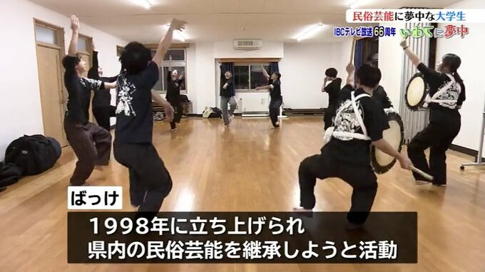 さんさの練習に取り組んでいるのは、岩手大学の民俗芸能サークル「ばっけ」のメンバーです。