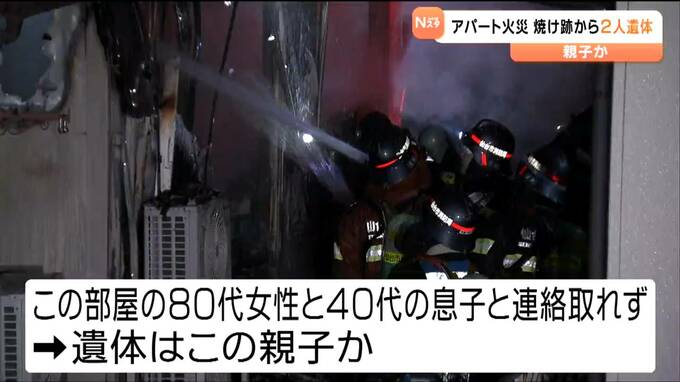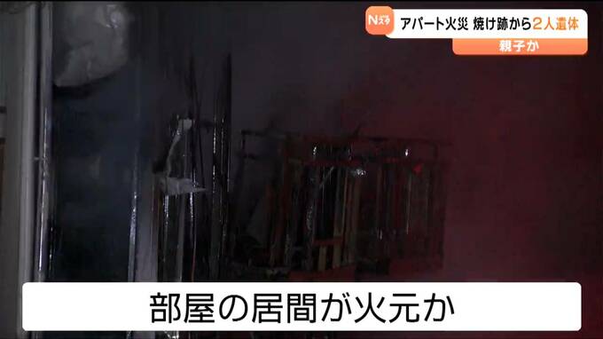 警察によりますと、この火事で火元の1階の部屋から身元が分からない2人の遺体が見つかりました。