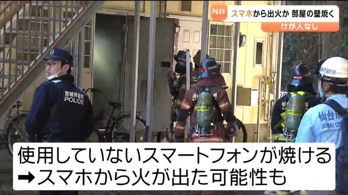 使用していないスマートフォンが焼けているのが見つかったということでスマホが火元の可能性があるということです。