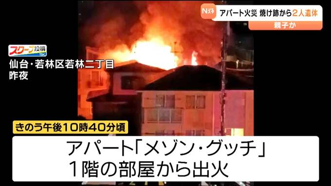 15日夜から16日午前にかけ仙台でアパート火災が2件発生し、このうち若林区の火事では、焼け跡から身元の分からない2人の遺体が見つかりました。