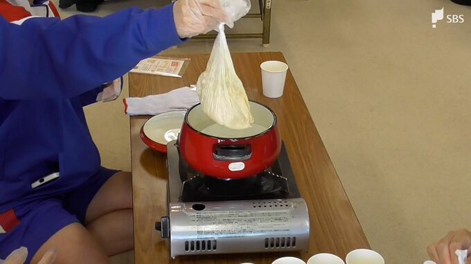 訓練では、ガスコンロを使った調理も行われました。細江区の青池自治会では竜巻の発生後、1週間ほど電気が使えない地域があり、多くの中学生が訓練に参加しました。