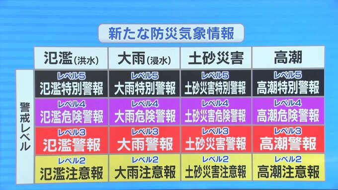現在の防災気象情報をめぐっては40種類以上にのぼり、「複雑でわかりにくい」と指摘されています。これを受け、気象庁は住民が取るべき行動をわかりやすくするため情報体系を大幅に刷新します。