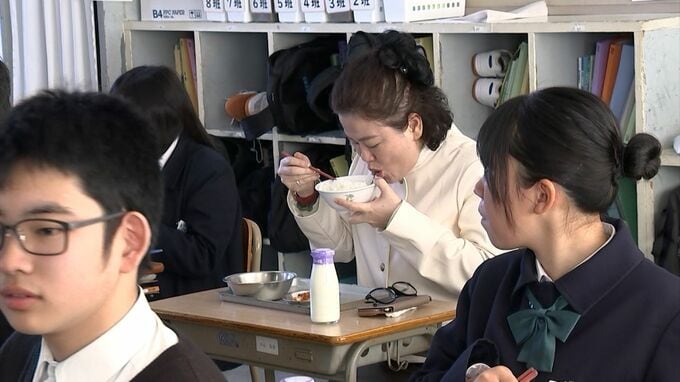 その後は、授業を見学したり給食を食べたりするなどして、生徒や教員らとの交流を深めていました。