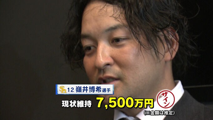 来シーズンが4年契約の最終年となる嶺井博希選手は現状維持の推定7500万円でサイン。