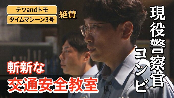 その一環で、警視庁の現役警察官の警視庁交通総務課・池田遼太巡査部長と金子三春巡査部長が“コンビ”で交通安全教室を行っています。この2人は、テツandトモやタイムマシーン3号などお笑い芸人から絶賛されているということです。