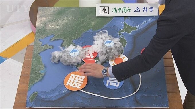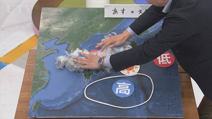 あすはこの南の高気圧から暖かい空気が流れ込んできますから、これによって少し気温が上がる見通しとなっています。