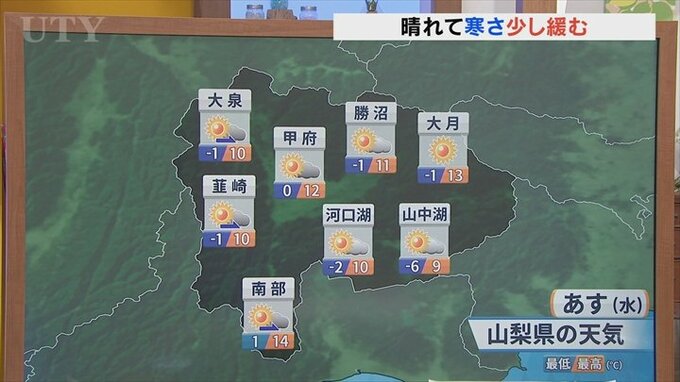 甲府はあすは0℃予想となっています。各地基本的には天気の崩れはありません。