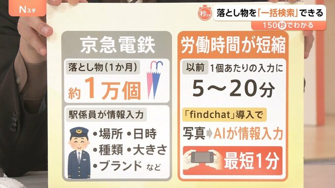 これらを、駅係員がパソコンで「日時」「場所」「種類」「ブランド」「大きさ」などの情報入力をしていて、1個あたり5分~20分かかっていたということです。
