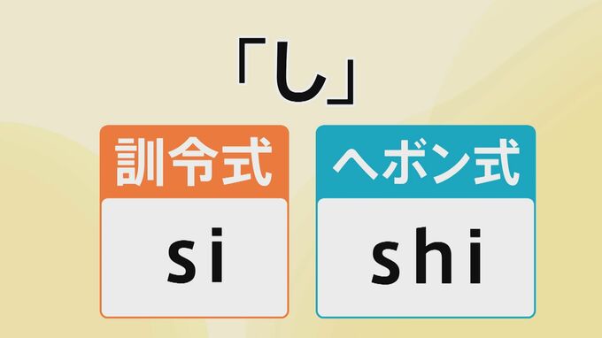 例えば「し」で比較してみると、訓令式は「si」、ヘボン式は「shi」に。「ち」で比較してみると、訓令式は「ti」、ヘボン式は「chi」となります。