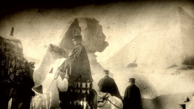 その頃の曽祖父のアルバムが残っています。兵学校と聞くと厳しい軍事訓練を想像しますが、アルバムには、はじけるような笑顔の写真や、机につっぷして寝る仲間の写真など、等身大の若者たちの姿があふれていました。卒業直後の練習航海でエジプトを訪れ、ピラミッドの前でラクダに乗って撮った写真もありました。