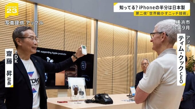 今年9月に撮影された写真に写っていたのは、アップルのティム・クックCEOに自社をアピールするTDKの齋藤社長です。