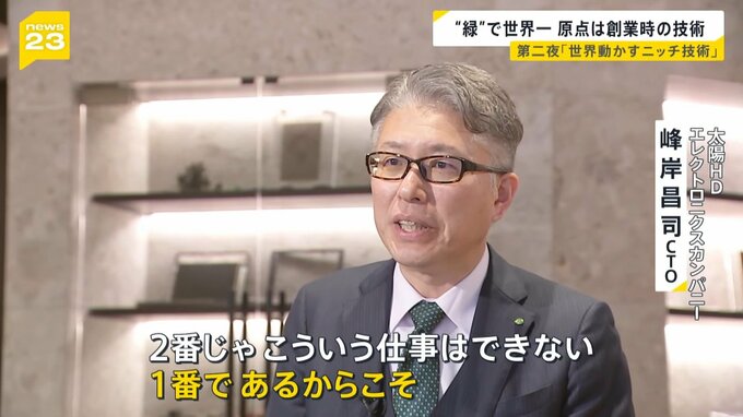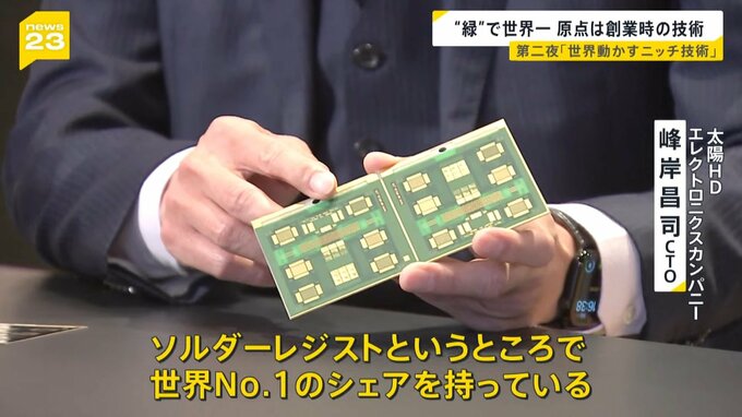 「私達が作っているのは(基板の)緑色の部分。ソルダーレジストというところで世界No.1のシェアを持っている」