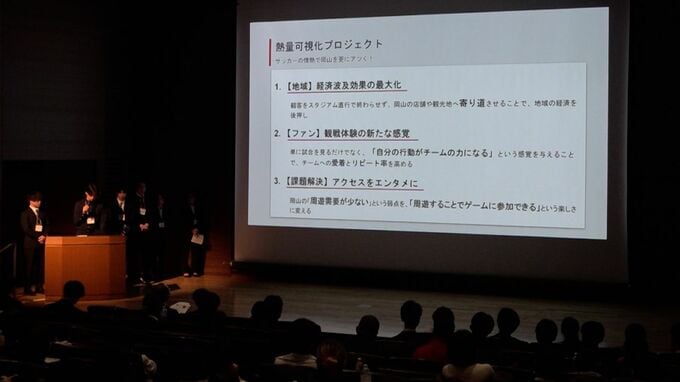 学生たちからは、備前焼を使用するといった岡山の文化を融合させる案や、温泉旅館を備えた宿泊ができるスタジアムなど、斬新なアイデアが出されました。