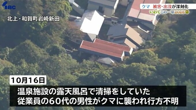 さらに今度は、岩崎新田地内の温泉施設の露天風呂で清掃をしていた従業員の60代の男性がクマに襲われ行方不明に…。