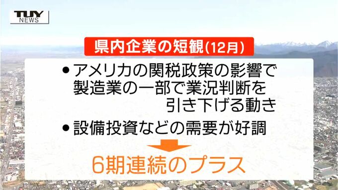 アメリカの関税政策の影響で製造業の一部で業況判断を引き下げる動きが見られたものの、設備投資などの需要が好調で6期連続のプラスです。