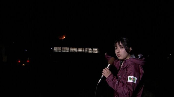 「あちらの小学校の裏手の山でも、赤い炎と白煙が立ち上って、どんどんと拡大しているのが確認できます」