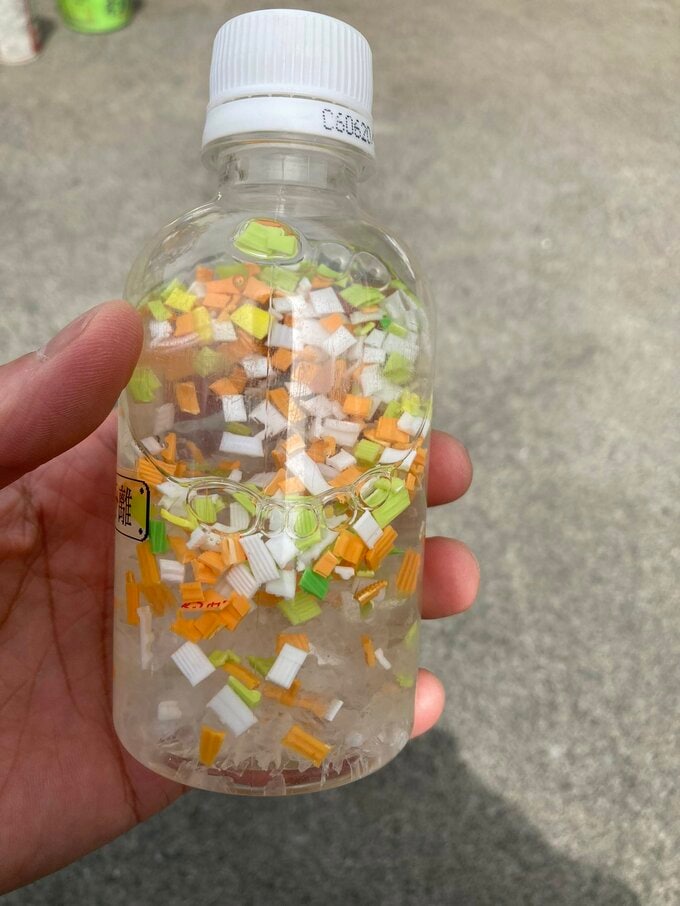 その理由として「回収されたペットボトルはバラバラにして水で分離します。リング浮かぶのでそこで分けられます。」と仕組みを解説しました。