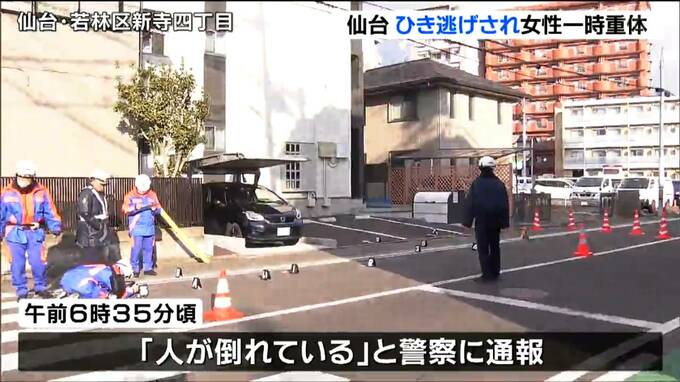 17日早朝、仙台市内で女性が車にはねられ重体となっているひき逃げ事件で、付近の防犯カメラが車や女性の姿を捉えていました。警察は、逃げた車の行方を追っています。