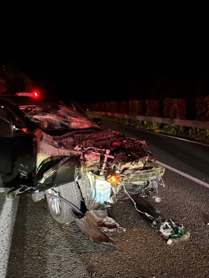 12月16日、神野梓さんは「釣りに向かう道中、高速道路の真ん中にシカがいて避けきれず衝突。」「その衝撃でハンドルが効かなくなり、ガードレールに突っ込みました。」と、インスタグラムで報告。