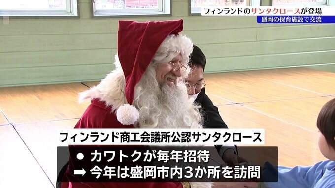 17日、盛岡市内の幼稚園にフィンランドからサンタクロースが訪れ子どもたちと交流しました。